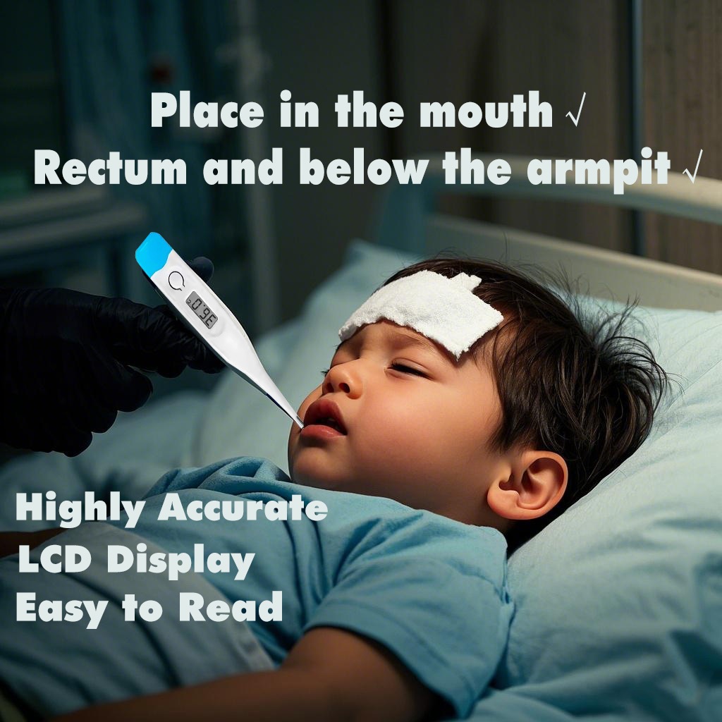 Este termómetro digital profesional de punta rígida proporciona una monitorización de temperatura rápida, precisa y fiable para el cuidado diario en el hogar, clínicas, hospitales e instituciones médicas. Diseñado con una sonda rígida y resistente, garantiza un contacto estable y lecturas consistentes para la medición de la temperatura oral, axilar y rectal.