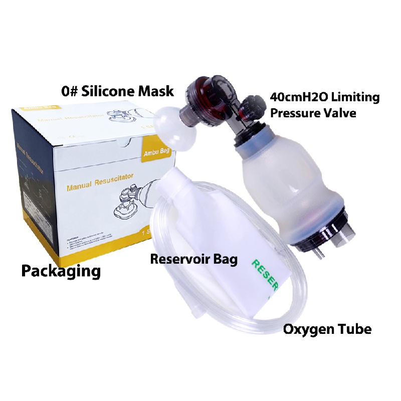 El resucitador manual está fabricado principalmente con silicona de grado médico, que ofrece una excelente flexibilidad, elasticidad y biocompatibilidad. Es suave al tacto y se ajusta perfectamente al rostro, lo que ayuda a reducir las lesiones por presión en la cara del paciente.