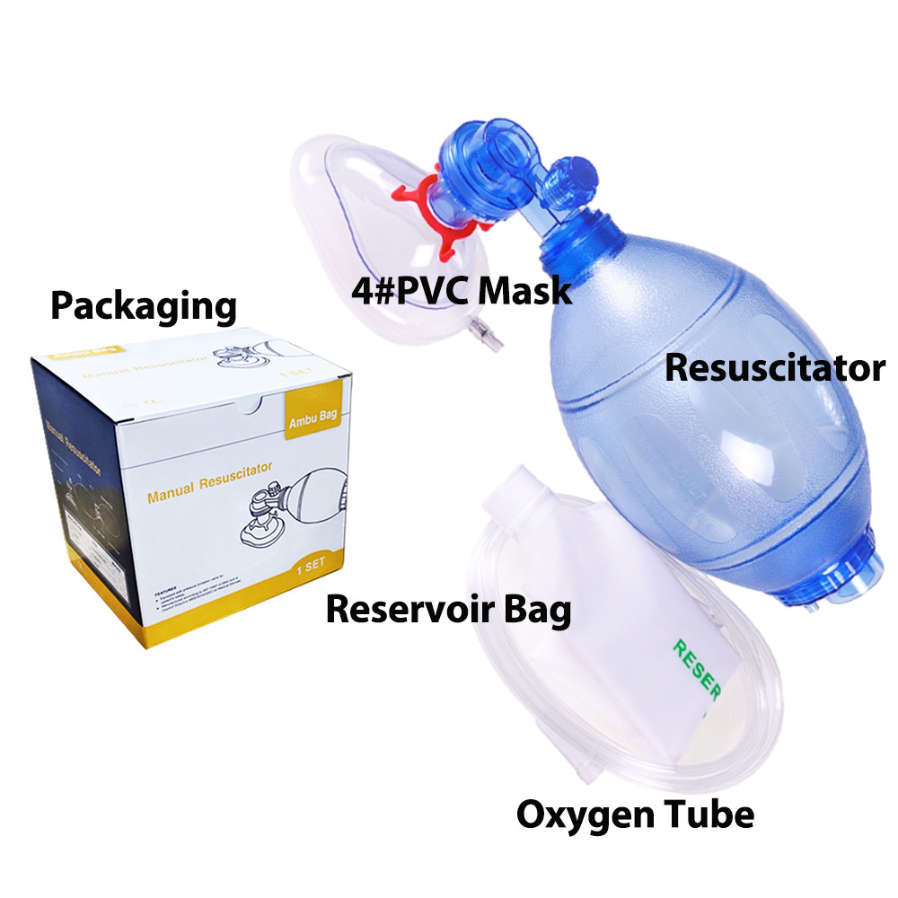 El resucitador manual está fabricado principalmente con PVC 100% de grado médico, que ofrece una excelente flexibilidad, elasticidad y biocompatibilidad. Es suave al tacto y se ajusta perfectamente al rostro, lo que ayuda a reducir las lesiones por presión en la cara del paciente.