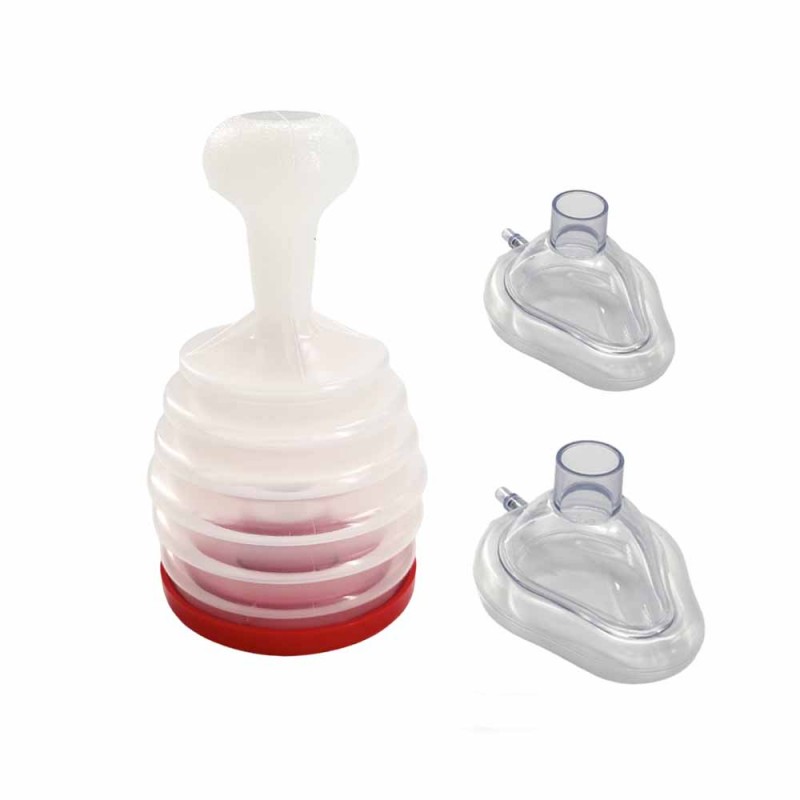 The product is mainly composed of handle, plunger, vent valve and face mask. It is a non-electric, non-invasive airway removal device designed with a special valve to prevent any air from escaping through the mask. The special valve prevents air from pushing down on food or objects. It can quickly and effectively remove the airway obstruction when the choking patient can not breathe, and save the life of the asphyxia patient.